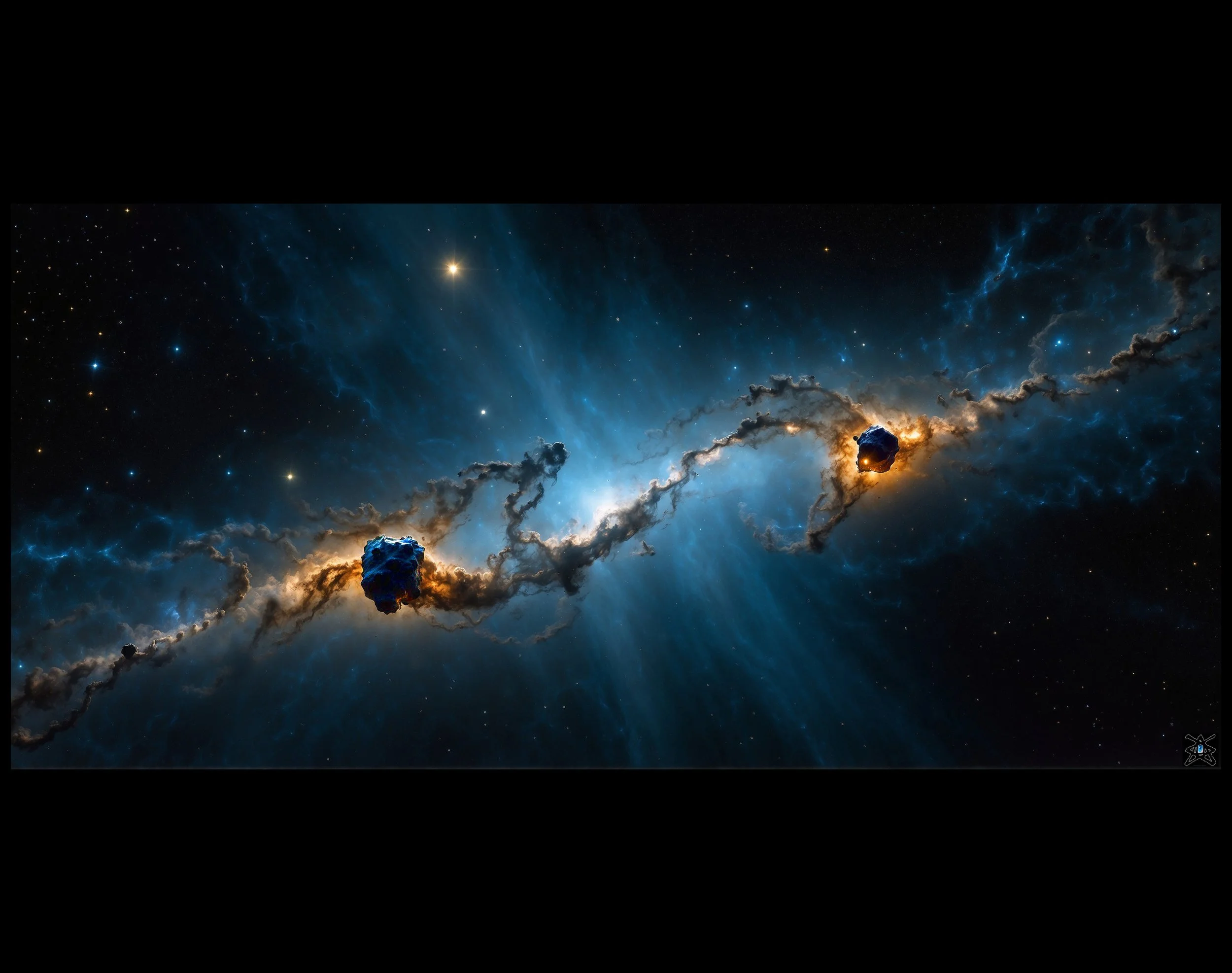 Dust swirls and piles up in heaps to make stars down deep in the core with heat and gravitation • here we are at the party • tugging pulling consuming each other because dark matter has contrived them to do so • we see light years of vista never seen on a screen before thee • behold.