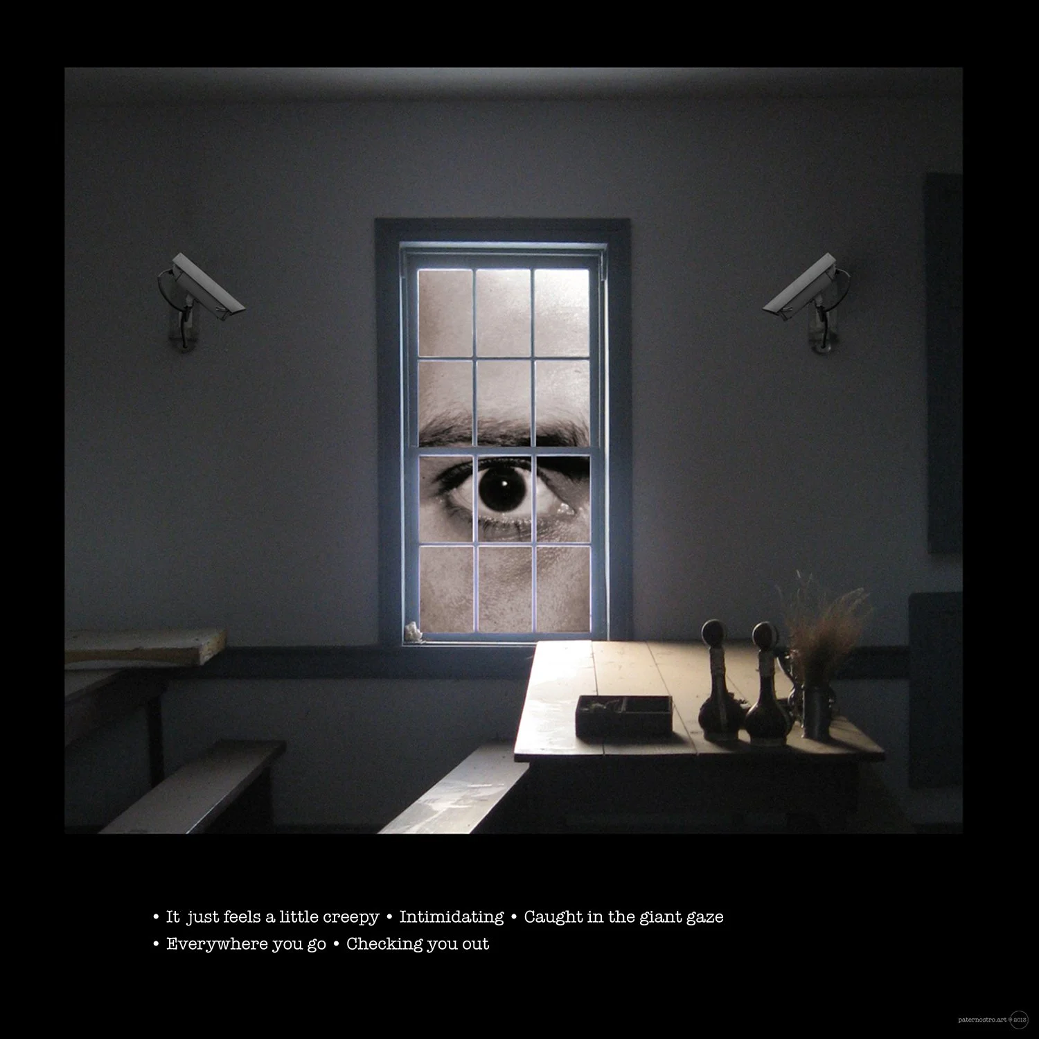 it just feels a little creepy, intimidating, caught in the giant gaze. everywhere you go, checking you out.