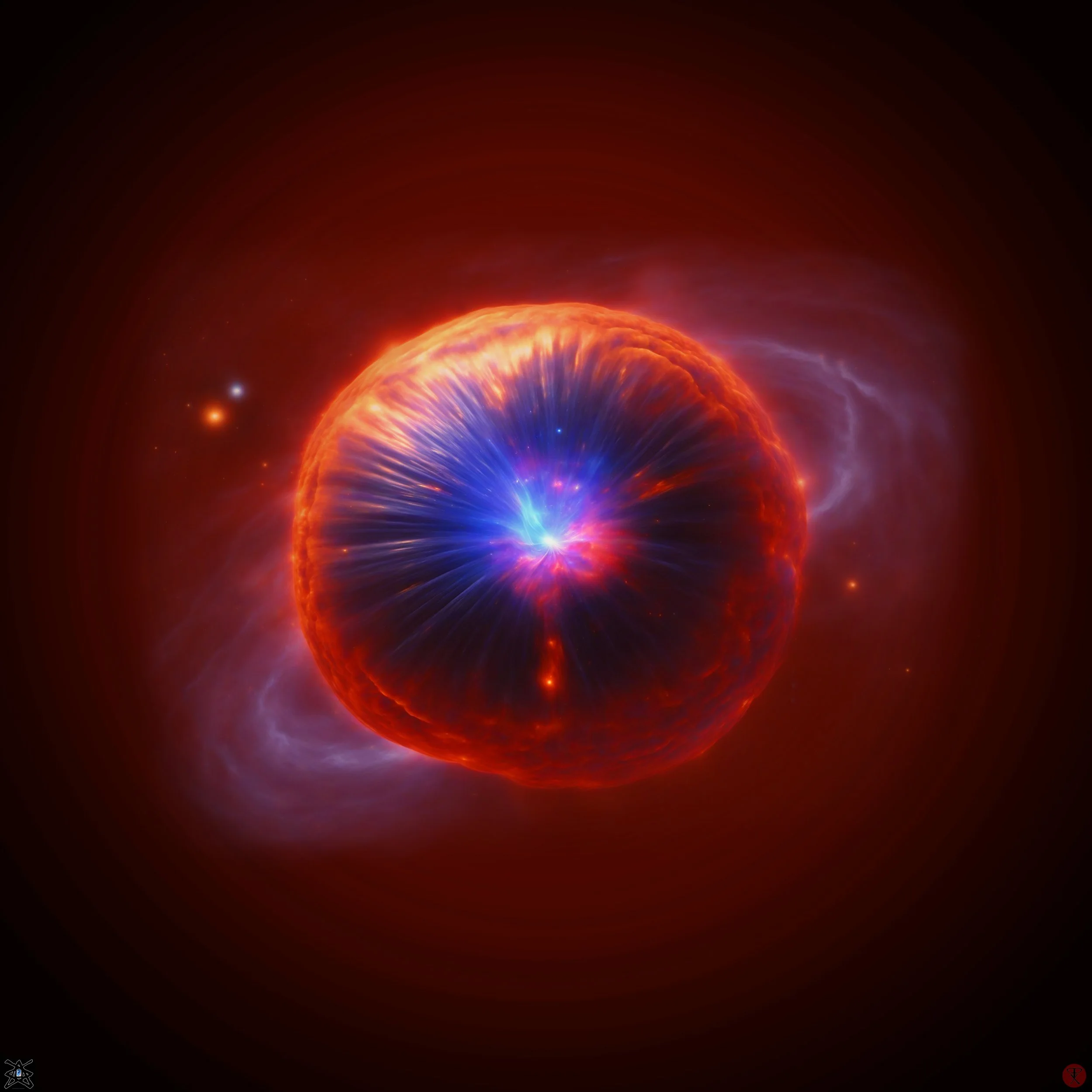 a madly spinning neutron star feasts on the interior of the super giant host • after embedding it’s ultra dense self into the core space of the red giant husk.